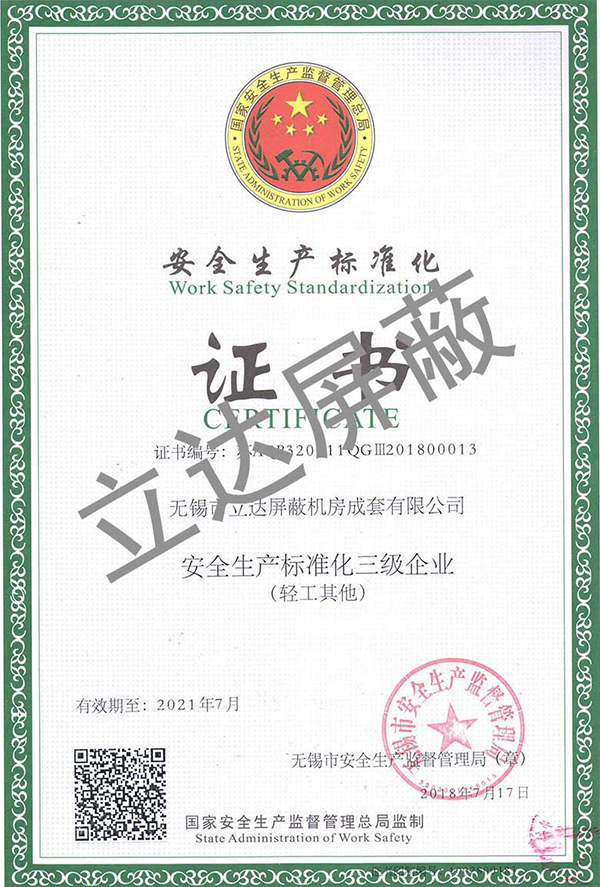 資質(zhì)證書 專業(yè)的電磁屏蔽機(jī)房的研發(fā)、設(shè)計(jì)與制造商